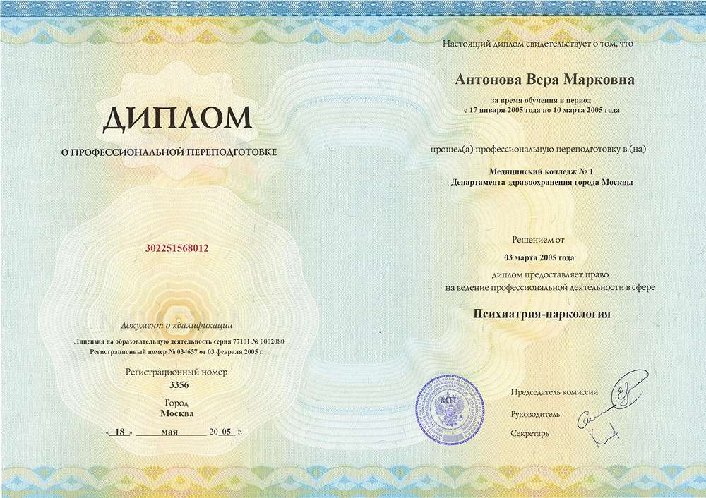 Медицинский колледж № 1 Департамента здравоохранения города Москвы (Психиатрия-наркология)