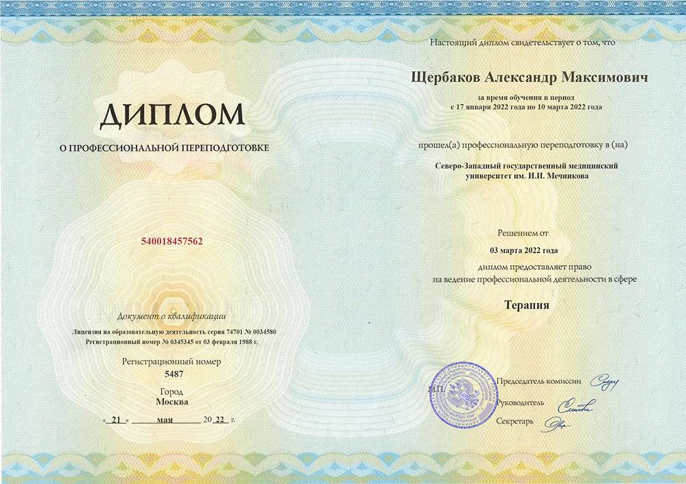 Северо-Западный государственный медицинский университет им. И.И. Мечникова (Терапия)