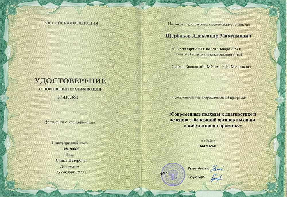 • 2023 : «Современные подходы к диагностике и лечению заболеваний органов дыхания в амбулаторной практике»